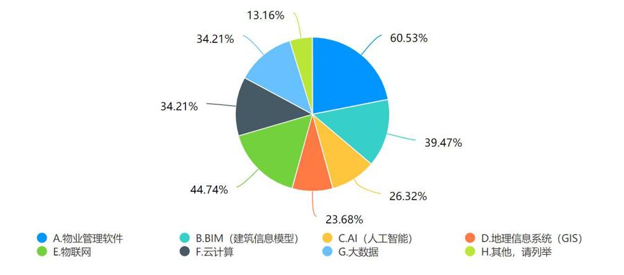 随着智能安防系统、智能环境系统等科技产品的应用,物业服务行业越来越“智能”。《长三角城市智慧运营管理人才创新发展报告》调查发现,长三角地区企业在运维管理中已经使用了多种技术和工具,并且对于新兴的技术趋势有关注和尝试。同时,根据各个技术和工具的使用比例,可以看出很多单位在运维管理中注重标准化、智能化和多元化的管理。其中,大多数企业都有物业管理的相关软件系统,物联技术的使用已接近50%,有三分之一的企业对BIM、云计算、AI、大数据等技术等进行了引进与尝试。